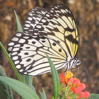 ‘Kijk, we hebben een worm. We gaan heel goed voor hem zorgen tot hij een vlinder wordt.’ ‘Dan kan je lang wachten.’